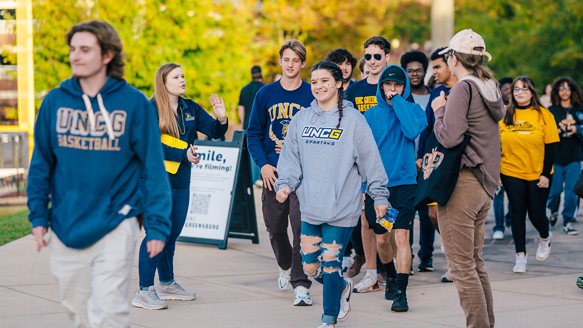 - 2:48Spartans Show off Blue & Gold for HomecomingWhat a week to be a Spartan! From campus events and alumni gatherings, UNCG Homecoming 2025 was a celebration of pride, connection, and community. Students, alumni, faculty, and friends came together to make this year’s homecoming one to remember.Follow us on social media! Facebook: www.facebook.com/uncg1891 Instagram: www.instagram.com/uncg Threads: www.threads.net/@uncg Tiktok: www.tiktok.com/@uncgreensboro X: x.com/uncg Bluesky: bsky.app/profile/uncg.edu